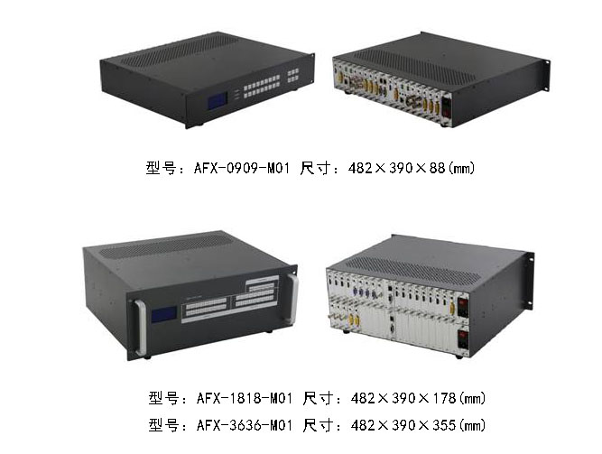 此系列矩阵是最新推出的一款迷你多功能混合矩阵,采用模块化的设计理念,增加音频的解析,传输,分配,切换功能,采用按键式管理的设计理念,此系列 9*9/18*18/36*36矩阵信号输入输出卡采用单卡单路的方式,最大限度的给予了用户配置的灵活性,单卡可实现CVBS/YPbPr/VGA/HDMI/DVI五类信号的任意转换,切换,传输功能,配备信号分辨率软硬调节,指示软硬调节,信号类型选择软硬调节功能,支持4K、EDID、HDCP是自动适应调节和解析,支持无缝快速切换功能,强大的性价比,更加体现了它的价值。此系列 采用了双控制系统设计,可以接入两套不同的控制系统, 此系列采用了电磁防护设计,可以有效的屏蔽掉来自周边环境的电磁干扰,从而使设备稳定的运行。 设备单通道交换信号速率高达6.75Gbps,主板交换能力采用四核四链路处理技术,核心交换能力可达速率32Gbps。数字信号运用无压缩的传输方式,保证图像信号的高保真输出;独特的信号链路屏蔽设计技术保证信号的完整性;内部核心数字开关具有超强的抗干扰能力及长期连续工作的高稳定性;运用先进的高级算法,保证命令的高效实时性;可选择CVBS/YPbPr/VGA/HDMI/DVI/SD、HD、3GSDI/HDBaseT/Fiber等信号作为输入或输出,完成大路数信号的配置规模,灵活的插卡式、模块化结构; 采用独特的处理方式,大大提高设备的切